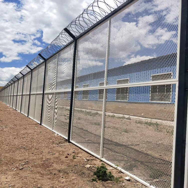 監獄護欄網通常采用鋼絲直徑為5mm、6mm、6.5mm, 網孔采用50mm*100mm、50mm*50mm、50mm*200mm、 50mm*150mm,