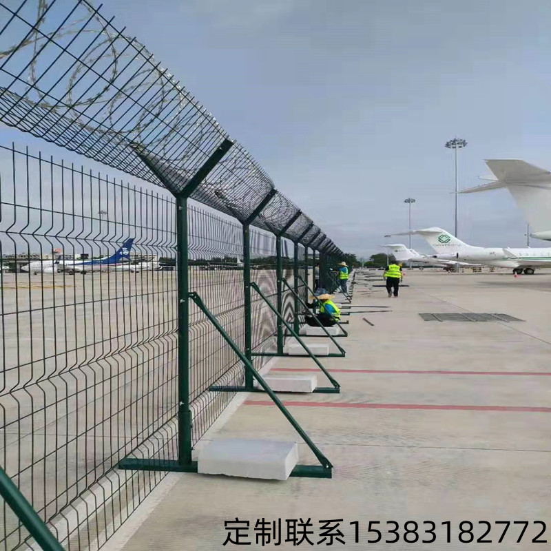 機(jī)場圍界網(wǎng)通常采用Y字型立柱,這種造型是為了方便在頂部架設(shè)刀片刺網(wǎng),這種組合模式可以大大提高機(jī)場圍界網(wǎng)的安全防護(hù)性能。