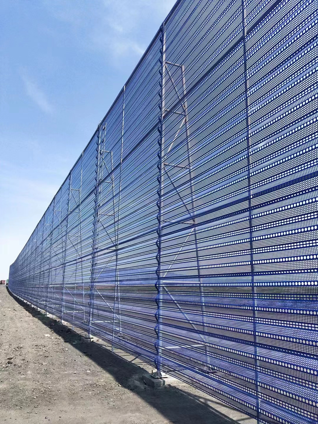 煤田防風(fēng)網(wǎng)的質(zhì)量是重要的。工地防風(fēng)抑塵網(wǎng)一次投資,長(zhǎng)期受益。擋風(fēng)抑塵墻設(shè)置后不僅使污染嚴(yán)重的地區(qū)環(huán)境得到有交的改良,而且實(shí)施擋風(fēng)抑塵墻的煤場(chǎng)每年還節(jié)省煤數(shù)千噸,在取得良好社會(huì)效益的同時(shí)又獲得了大的經(jīng)濟(jì)效益,美觀整齊的擋風(fēng)抑塵墻也成為這些地區(qū)-道怡人的風(fēng)景線。涂彩防風(fēng)抑塵網(wǎng)此產(chǎn)品采用金屬原材料經(jīng)機(jī)械組合模具沖孔、壓制、噴塑而成,具有強(qiáng)度高、韌性好、抗彎曲、抗老化、抗阻燃、耐高低溫、耐酸堿、 承受彎曲變形能力強(qiáng)等優(yōu)良性能;經(jīng)過特殊配方和工藝制作,可根據(jù)用戶需要制成各種厚度、顏色,具有使用壽命長(zhǎng)、色彩鮮艷不易褪色等特點(diǎn);綜臺(tái)抑塵效果良好,優(yōu)于國(guó)內(nèi)外同類產(chǎn)品。