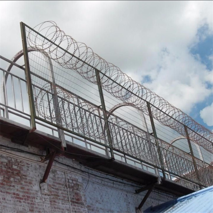 監(jiān)獄鋼網(wǎng)墻刀片剌網(wǎng)具有嚇阻、防翻越等效果材質(zhì)堅(jiān)硬高強(qiáng)度高張力,造型設(shè)計(jì)獨(dú)特不宜觸摸因而能達(dá)到極好的防護(hù)隔離效果監(jiān)獄護(hù)欄網(wǎng)還具有施工簡(jiǎn)便經(jīng)濟(jì)實(shí)用等優(yōu)點(diǎn)。