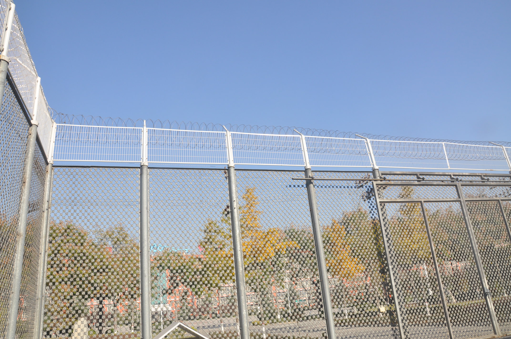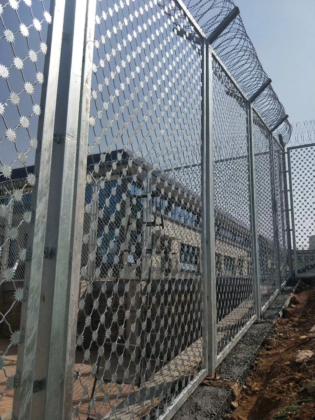 監獄梅花刺隔離網又叫沖壓刺隔離網、太陽花刺片隔離網,行業內簡稱梅花刺網。其特點為堅固牢靠、防止攀爬等。梅花刺隔離網一般用于監獄大門,探監門,人員通道兩邊的隔離網,由于其成本造價高,所以還沒有廣泛替代焊接式隔離網。1、梅花刺片:梅花刺片直徑不小于7.5cm(直徑6cm、7cm、8cm),刺片厚1.5mm,采用Q235低碳鋼板沖壓成型。梅花刺片用氬弧焊將梅花形刺片焊接在美格網的節點上,形成刺形保護,有效的防止了手握腳攀。