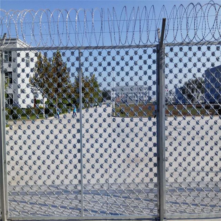 欄網(wǎng)的Y形柱還裝備了不銹鋼刀片刺網(wǎng),并對其外表進行了噴涂。常見的是深綠色噴涂和銀灰色噴涂,看起來高端,簡單而美麗,并且能夠