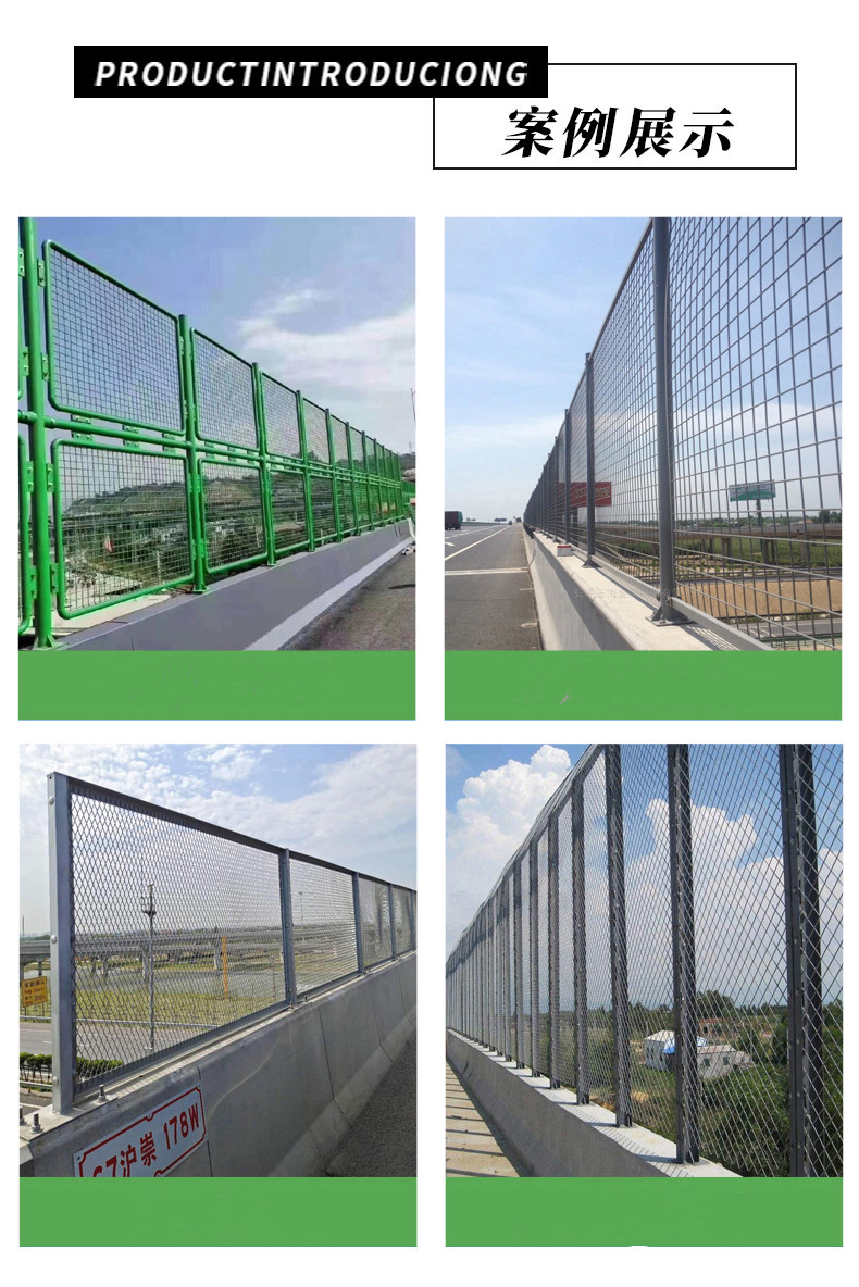 高速公路互通橋防拋防落網(wǎng)橋梁防落物網(wǎng)優(yōu)點(diǎn): 1. 網(wǎng)身輕巧、造型新穎、美觀耐用; 2. 特別適合于橋梁防拋網(wǎng); 3. 高效浸塑十年防銹; 4. 拆裝方便,重復(fù)使用性好,可根據(jù)需要對圍網(wǎng)重新布局; 5. 環(huán)保產(chǎn)品,最終可回收利用。高速公路互通橋防拋防落網(wǎng)橋梁防落物網(wǎng)外型新穎、橫向通透、美觀輕巧、 獨(dú)創(chuàng)風(fēng)格、防眩效果特佳,避免夜間行車受對向車輛射出強(qiáng)光而影響視覺所造成的交通事故,保證了道路暢通和經(jīng)濟(jì)效益。加熱浸鋅表面處理,防銹功能超過15年。本產(chǎn)品所采用的桃型柱、雙圈、波浪、雙邊護(hù)欄網(wǎng)等系列的專業(yè)產(chǎn)品具有網(wǎng)身輕巧、造型新穎、美觀、