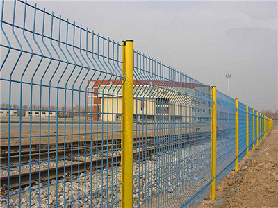 三角折彎護欄網布局:用高強度冷拔絲與低碳鋼絲焊接后通過液壓成型,用銜接附件與鋼管支柱固定。