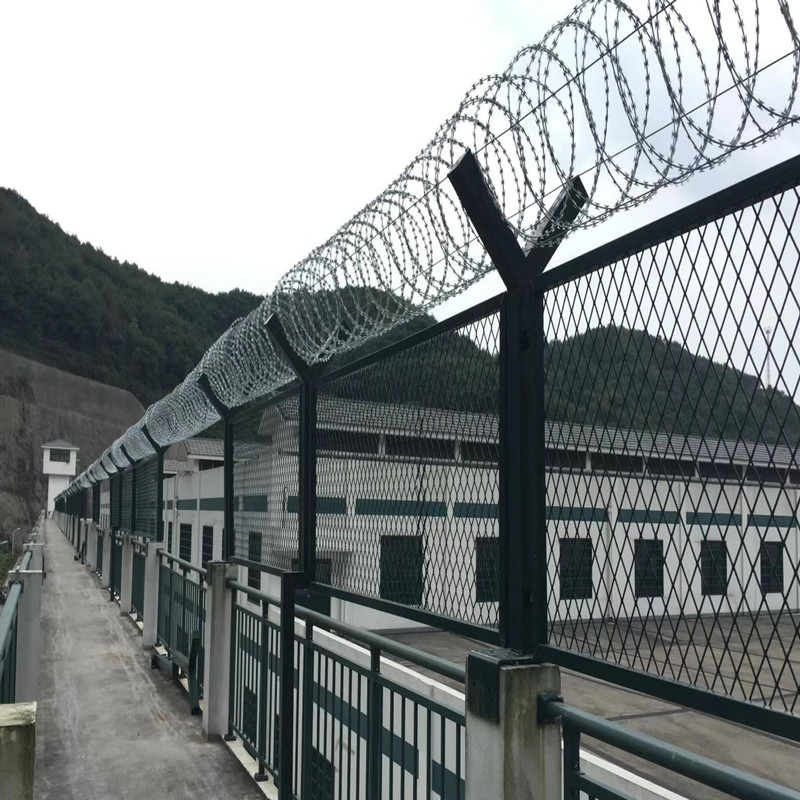 監(jiān)獄護(hù)欄網(wǎng)又稱(chēng)作“Y型安全防御護(hù)網(wǎng)”,是由V型支架立柱,加強(qiáng)型焊接片網(wǎng)。安全防盜連接件和熱鍍鋅刀片刺籠組成強(qiáng)度和安全防御性級(jí)別很高。