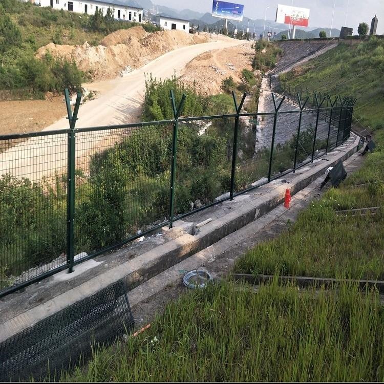 網片通常帶有V型加強槽,可大大增強鋼筋網圍界的抗沖擊力,立柱頂部焊有V型支